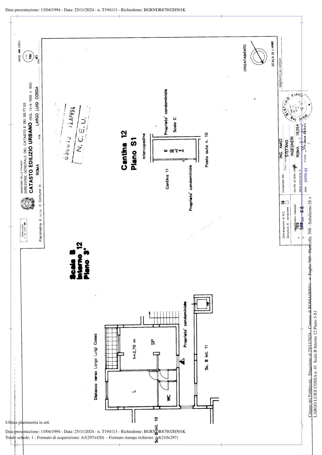| Cantina - piano interrato | 4 Mq | 1 Mqc |