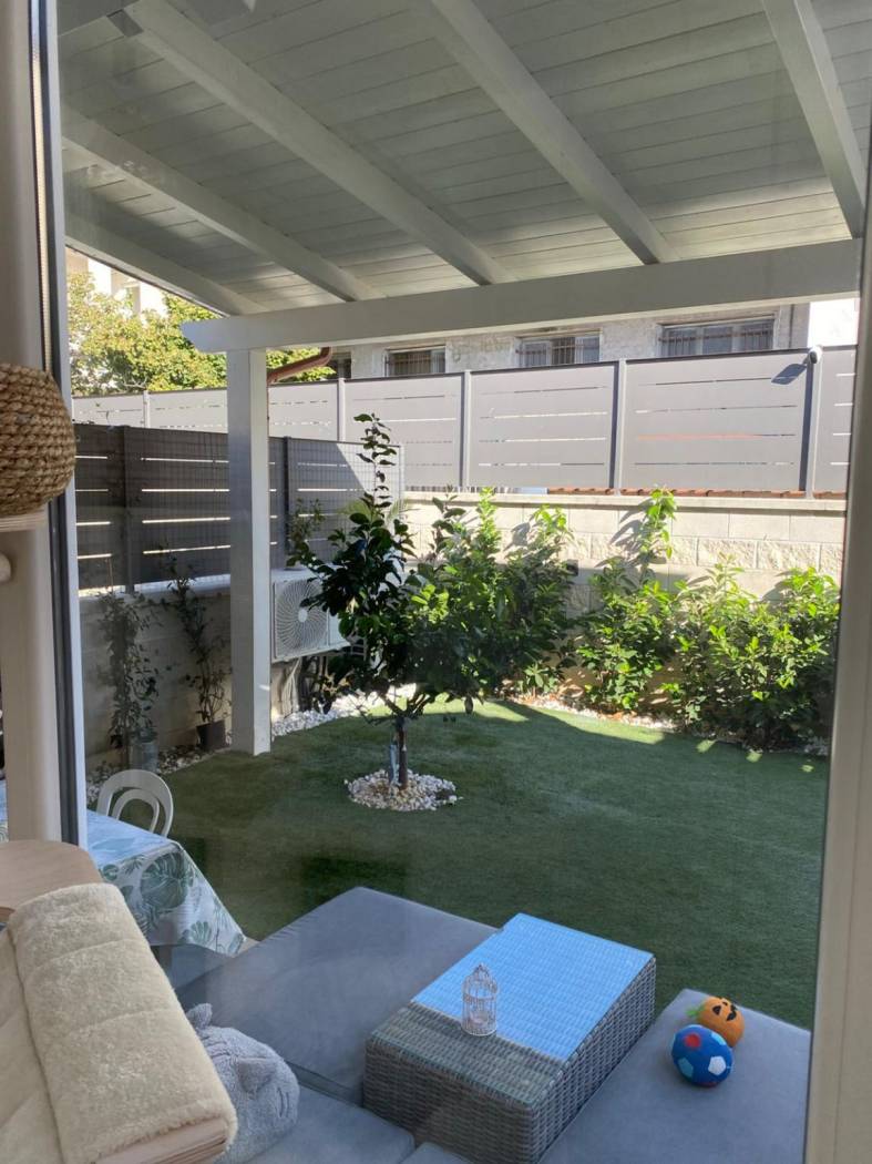Lo spazio esterno, curato e funzionale, è suddiviso in due ambienti:
