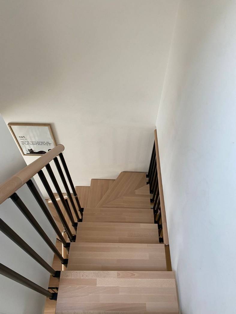 due stanze mansardate con tetto e travi in legno a vista;