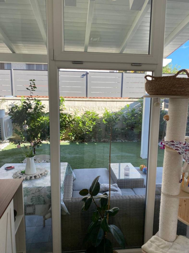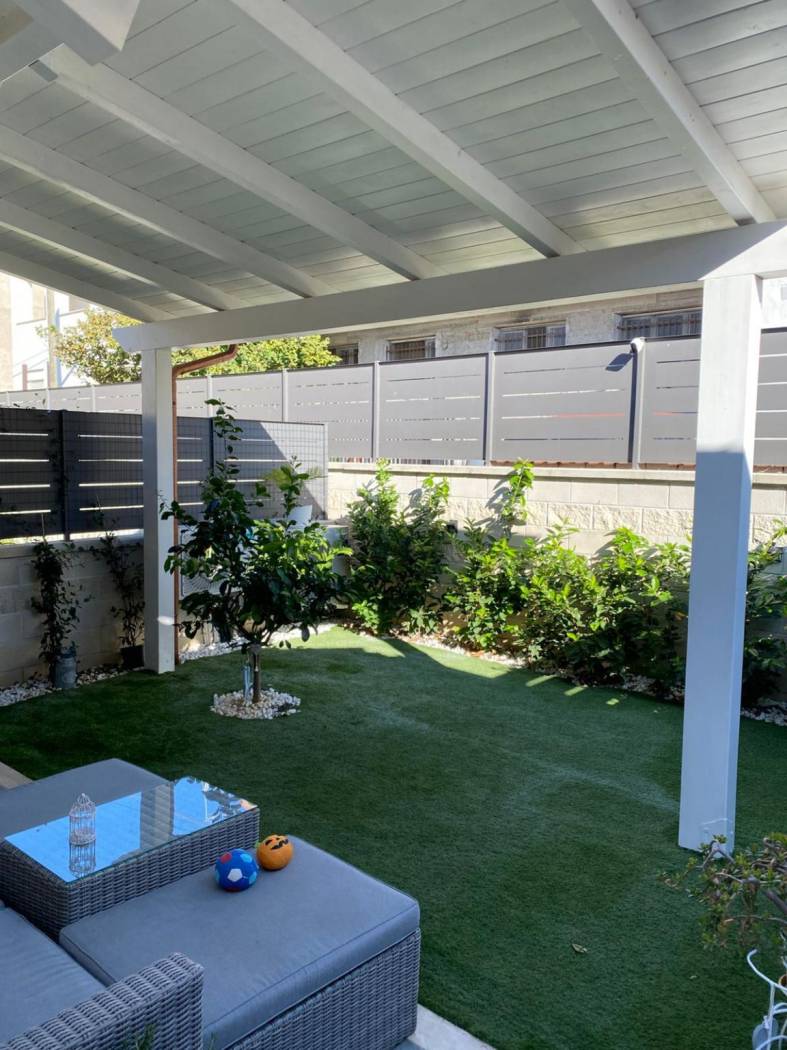 la corte posteriore, perfetta come zona relax, arricchita da una serra solare che dona luminosità agli ambienti interni.