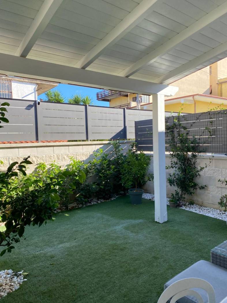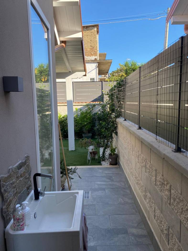 Lo spazio esterno, curato e funzionale, è suddiviso in due ambienti: