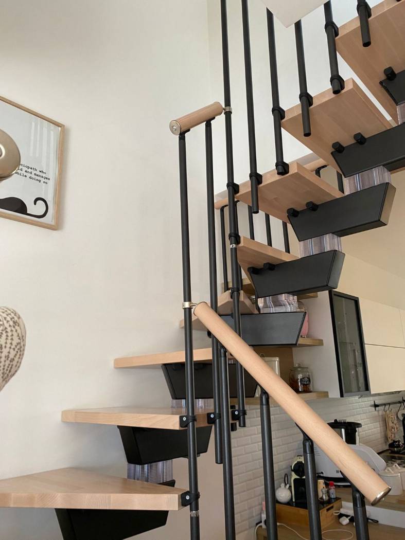 due stanze mansardate con tetto e travi in legno a vista;